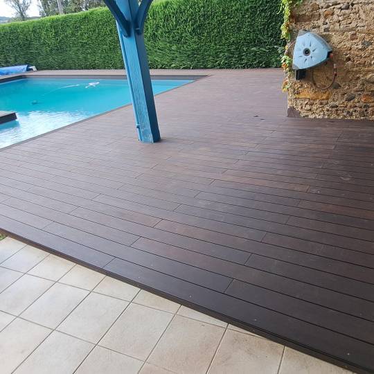 Comme le bois, le bambou est un matériau vivant. Un entretien annuel est recommandé pour conserver son apparence d’origine. En l’absence d’entretien, la terrasse se patinera naturellement et adoptera une élégante teinte grisée propre au bois exposé en extérieur .