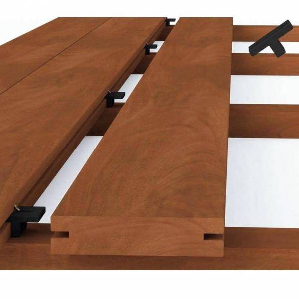Nous préconisons l’emploi de vis en inox A2 qui sont déjà comprises dans la boite de clips NOVLEK HARDWOODCLIP