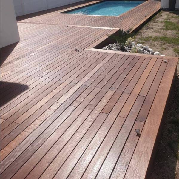 Le grain de l’itauba est très fin, ce qui donne a ces lames en bois exotique un rendu homogène.