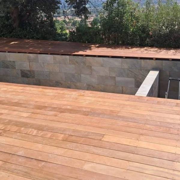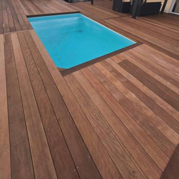 Le grain de l’itauba est très fin, ce qui donne a ces lames en bois exotique un rendu homogène.