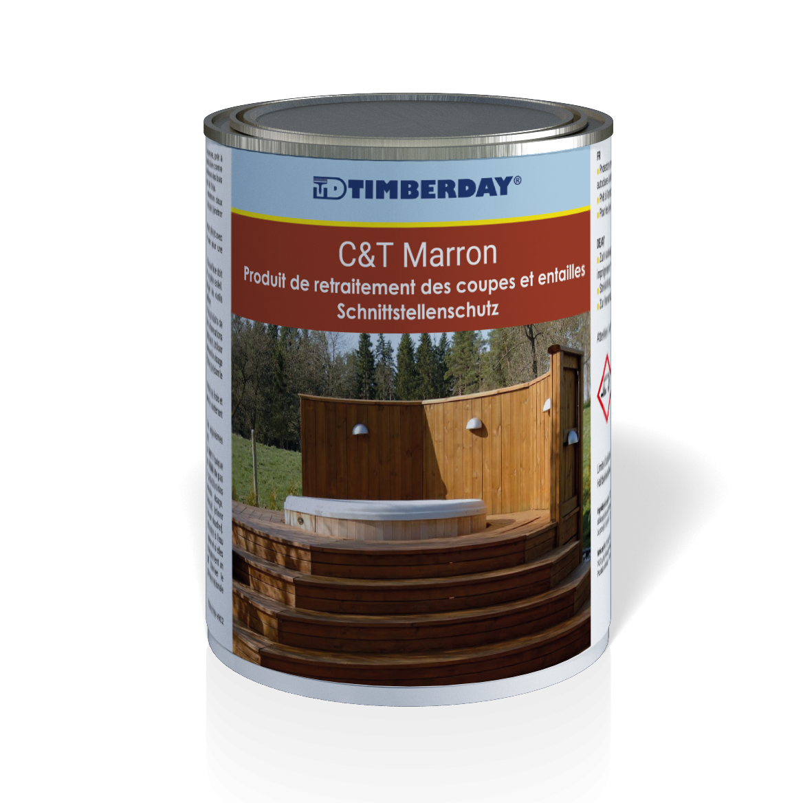 Le CT Marron est un produit professionnel de traitement en phase aqueuse destiné au traitement des coupes de bois traités pour les classes d’usage 3 et 4 .