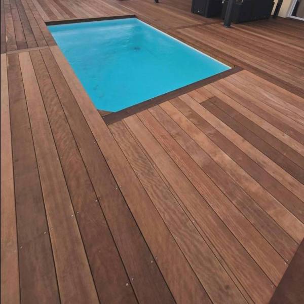 Le grain de l’itauba est très fin, ce qui donne a ces lames en bois exotique un rendu homogène.
